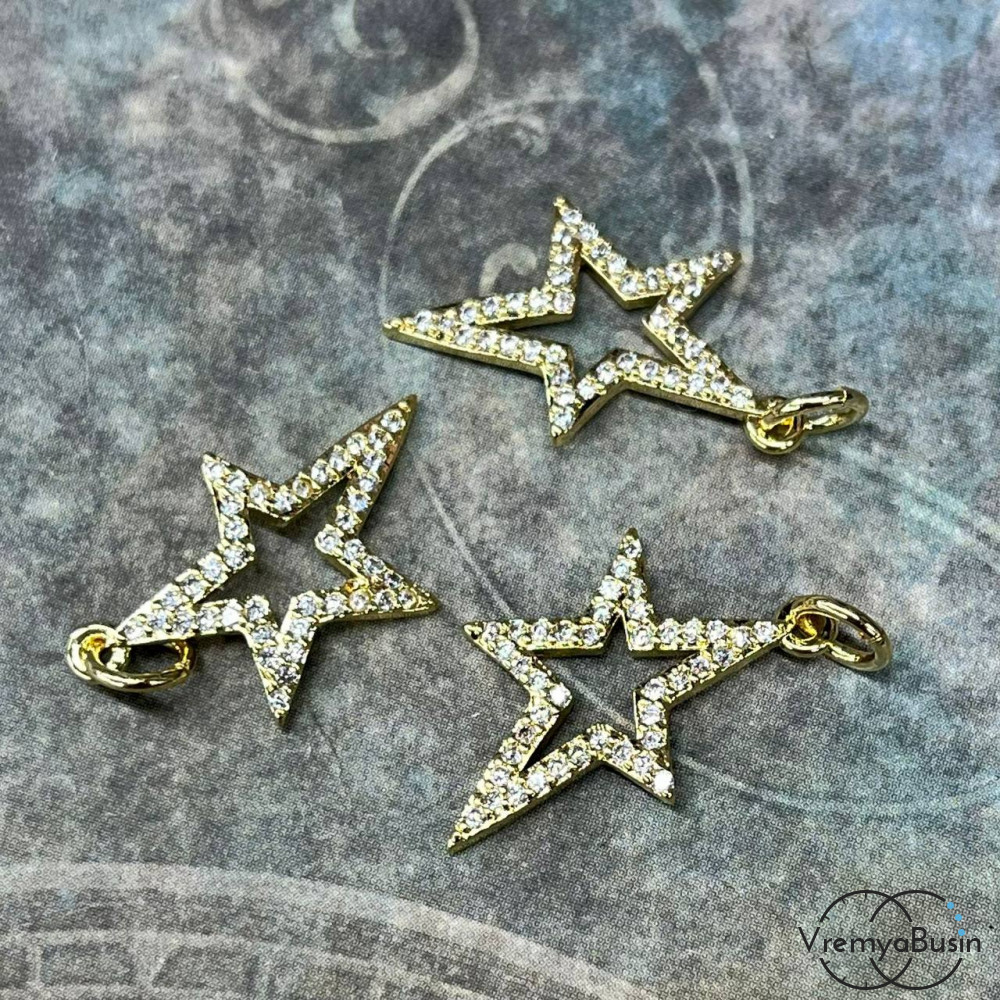 • Подвеска "Звезда", 12х20 мм, из латуни с позолотой и фианитами  (1 шт.)