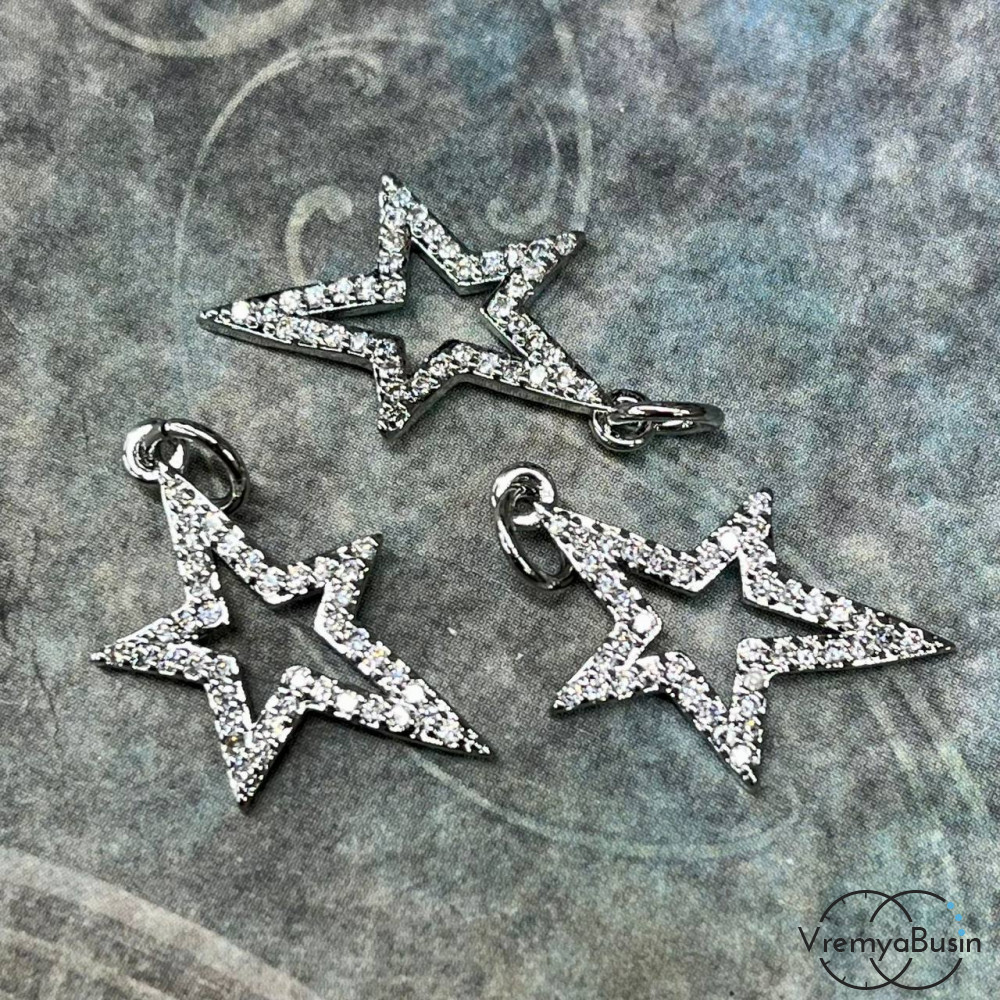 • Подвеска "Звезда", 12х20 мм, из латуни с родиевым покрытием и фианитами  (1 шт.)