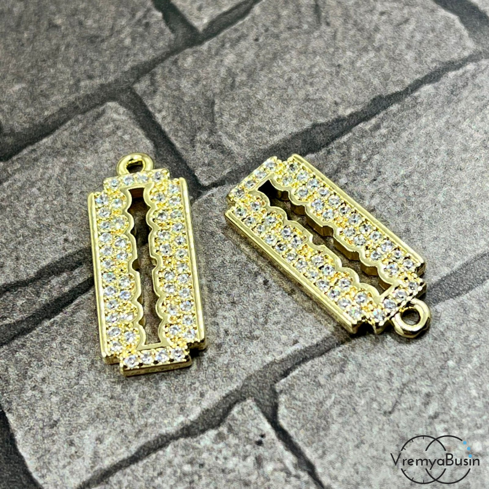 • Подвеска "Лезвие", 9х20 мм, из латуни с позолотой и фианитами (1 шт.)