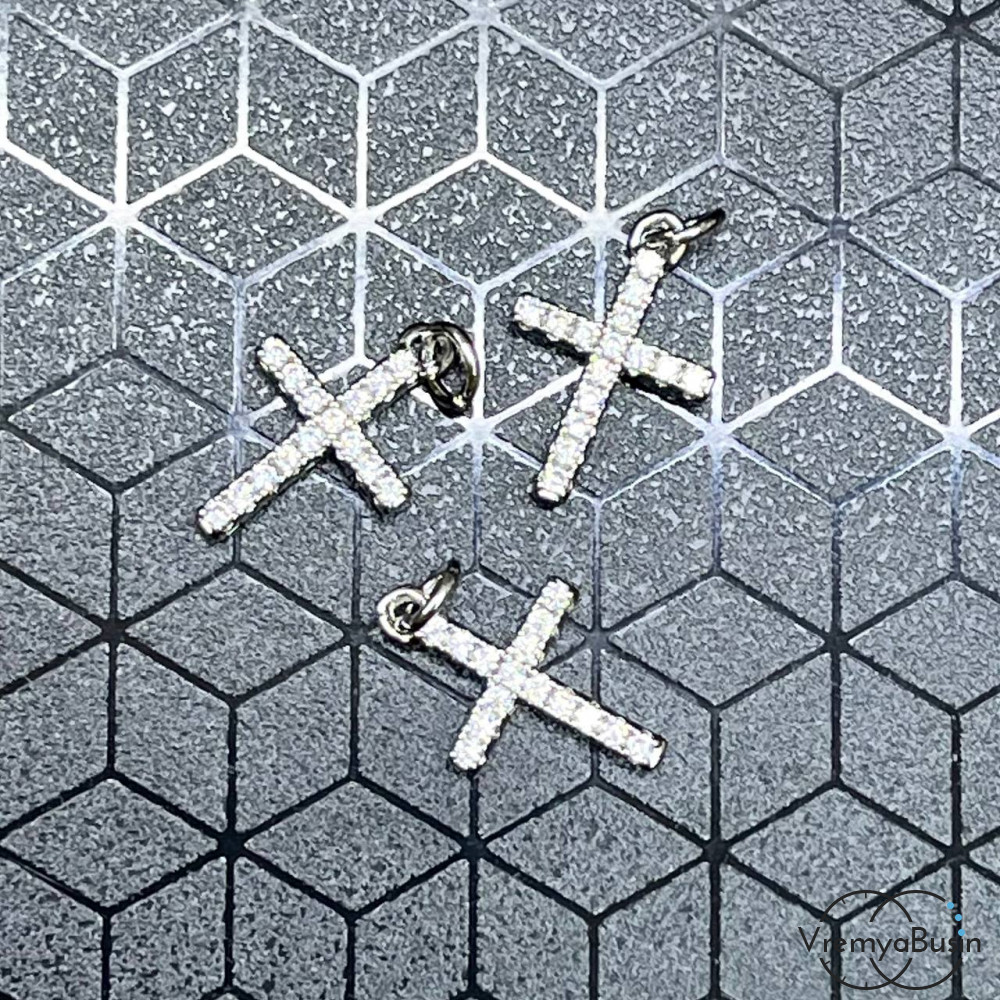 • Подвеска "Крестик", 10х14 мм, из латуни с родиевым покрытием и фианитами  (1 шт.)
