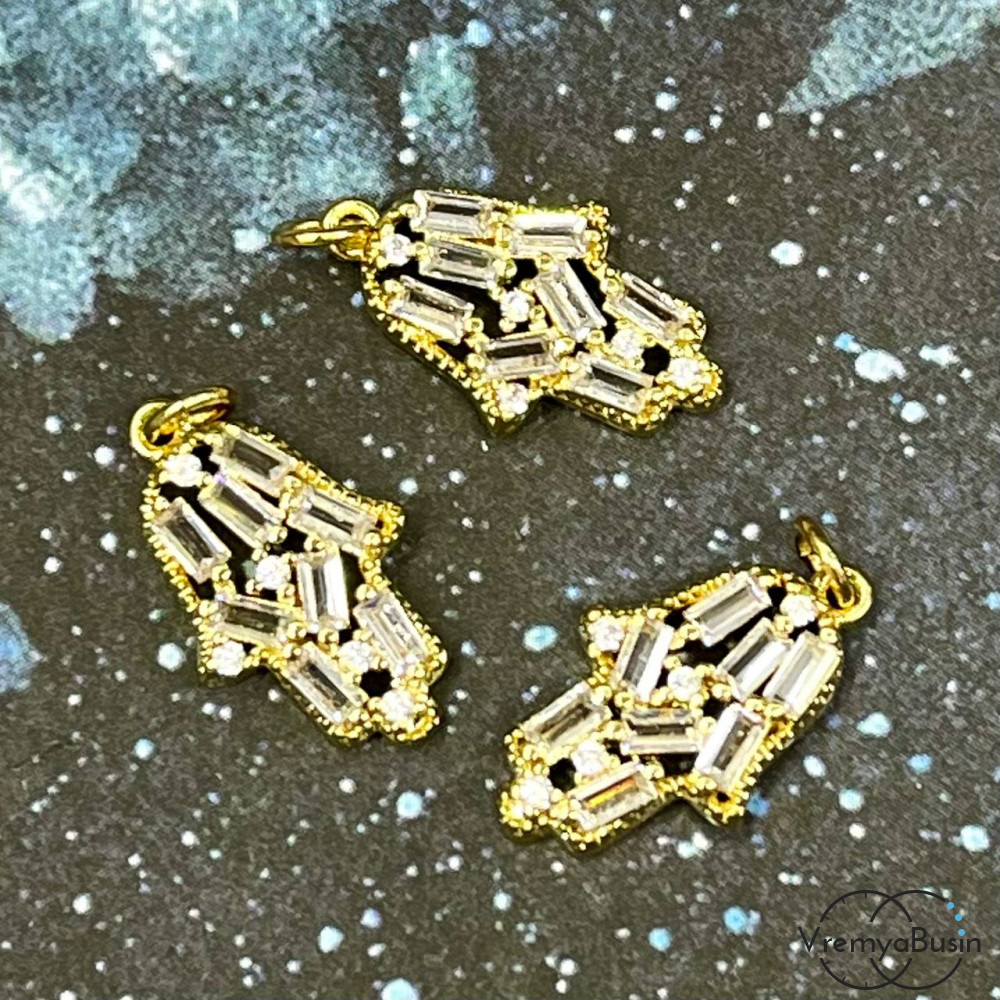 • Подвеска «Ладонь», 10х17 мм, из латуни с позолотой и фианитами  (1 шт.)