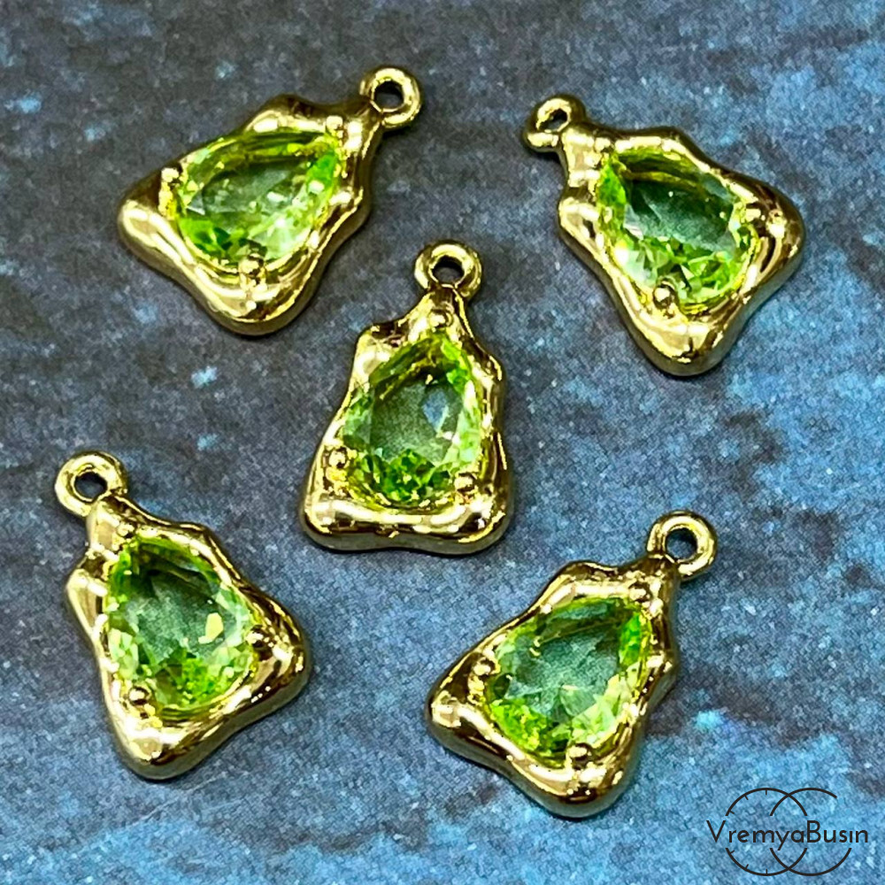 • Подвеска с фианитом, капля 14х9 мм, латунь с позолотой, цв. салатовый  (1 шт.)