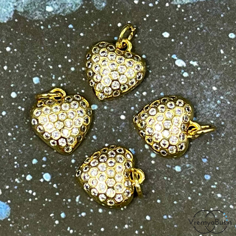 Подвеска «Сердце», 12х11 мм, из латуни с позолотой и фианитами (1 шт.)