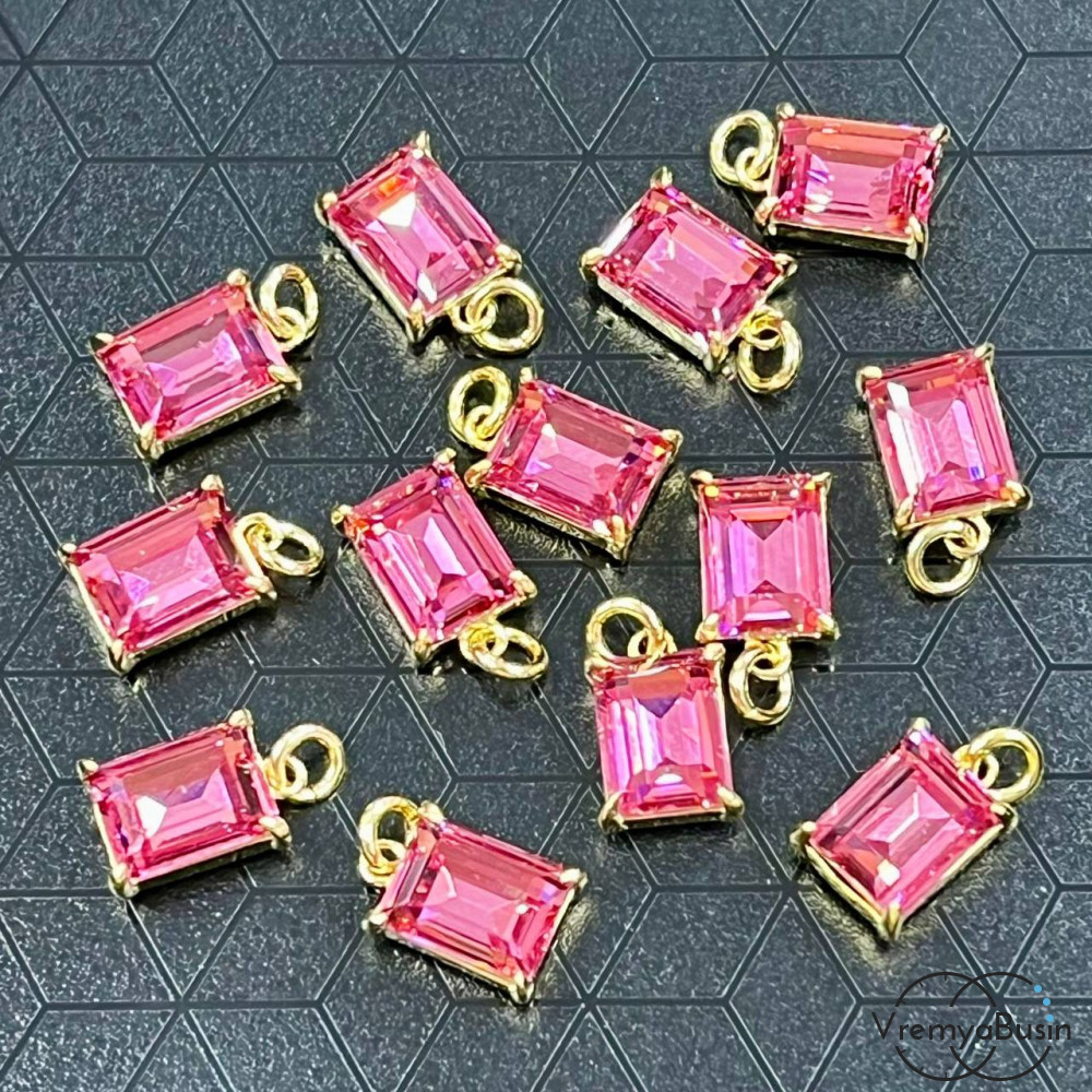 Подвеска с фианитом, прямоугольник 10х6 мм, латунь с позолотой (1 шт.)