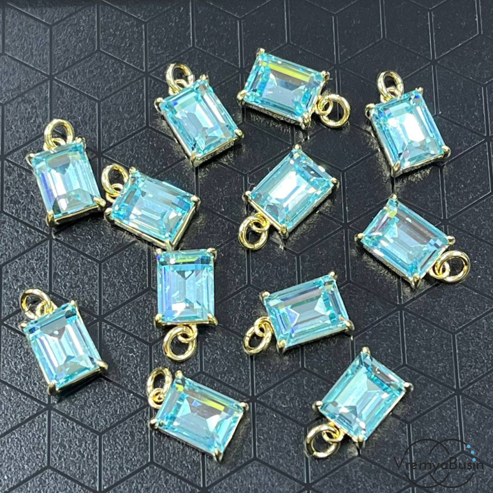 • Подвеска с фианитом, прямоугольник 10х6 мм, латунь с позолотой (1 шт.)