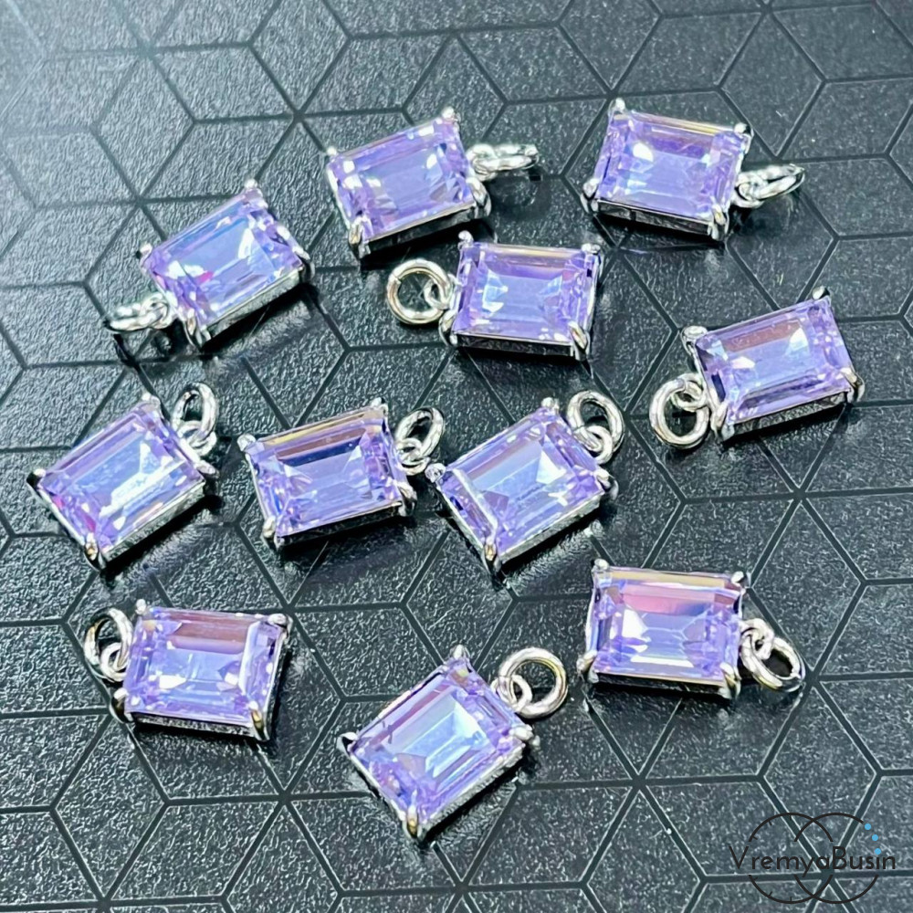• Подвеска с фианитом, прямоугольник 10х6 мм, латунь с родиевым покрытием (1 шт.)