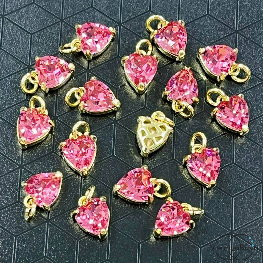 Подвеска с фианитом, сердце 9х7 мм, латунь с позолотой (1 шт.)