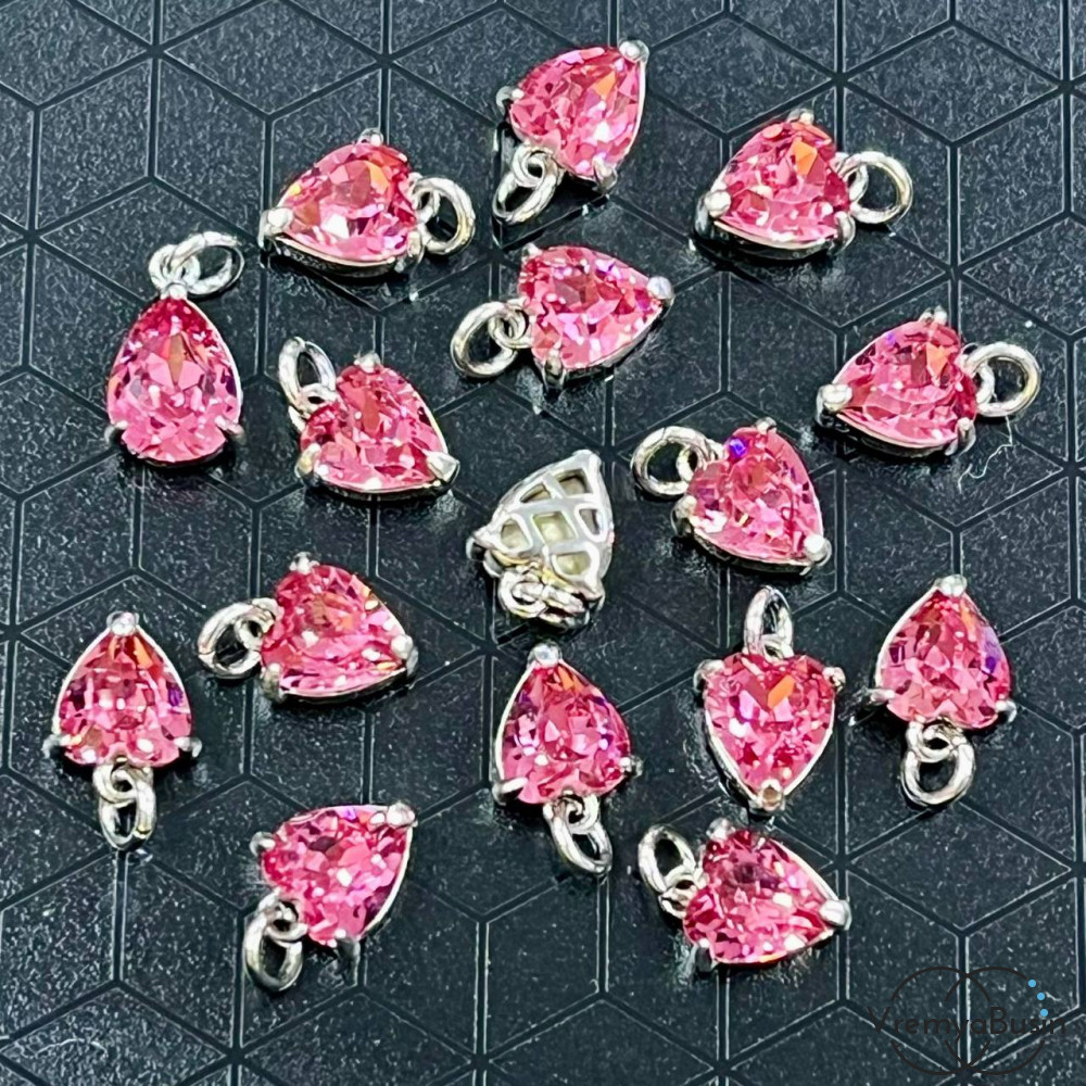 Подвеска с фианитом, сердце 9х7 мм, латунь с родиевым покрытием (1 шт.)