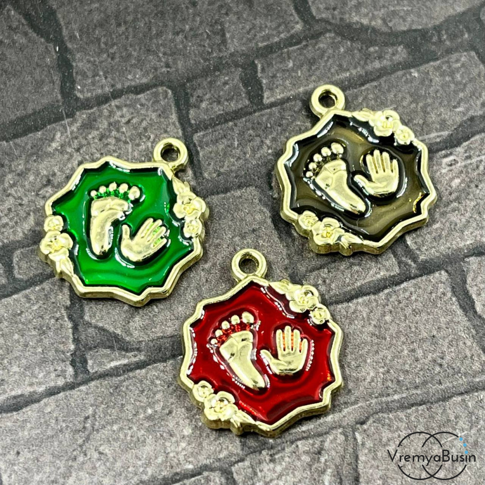 Подвеска из цинкового сплава с эмалью "Ручка и ножка", 21х18 мм, цв. золото (1 шт.)