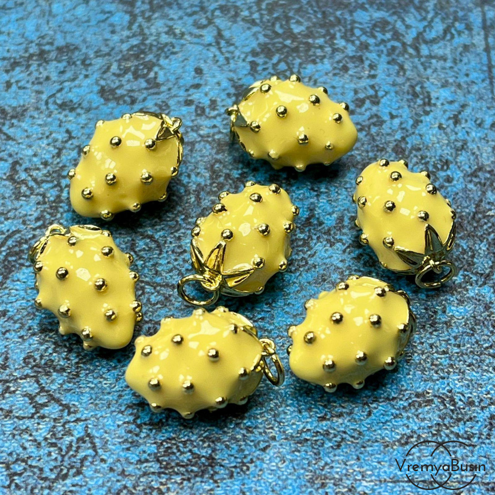 • Подвеска  с эмалью "Клубничка", 12х17 мм, из латуни с позолотой, цв. желтый (1 шт.)