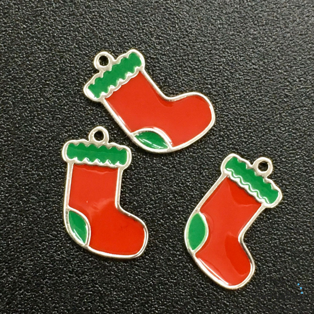 • Подвеска с эмалью "Носок", 10х14 мм, латунь с родиевым покрытием  (1 шт.)