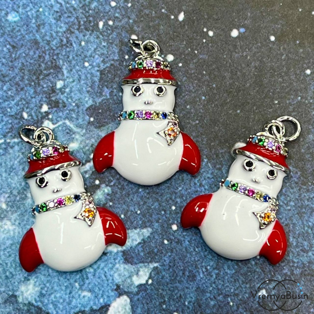 • Подвеска "Снеговик", 20х14 мм,  с эмалью и стразами, латунь с родиевым покрытием  (1 шт.)