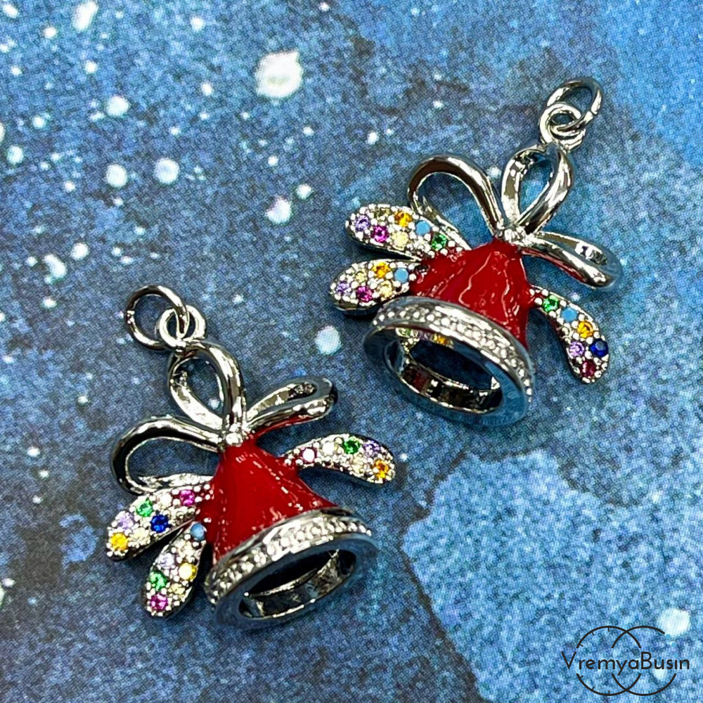 • Подвеска "Колокольчик", 18х17 мм,  с эмалью и стразами, латунь с родиевым покрытием  (1 шт.)