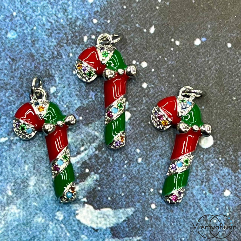 • Подвеска "Леденец", 19х10 мм, с эмалью и стразами, латунь с родиевым покрытием  (1 шт.)