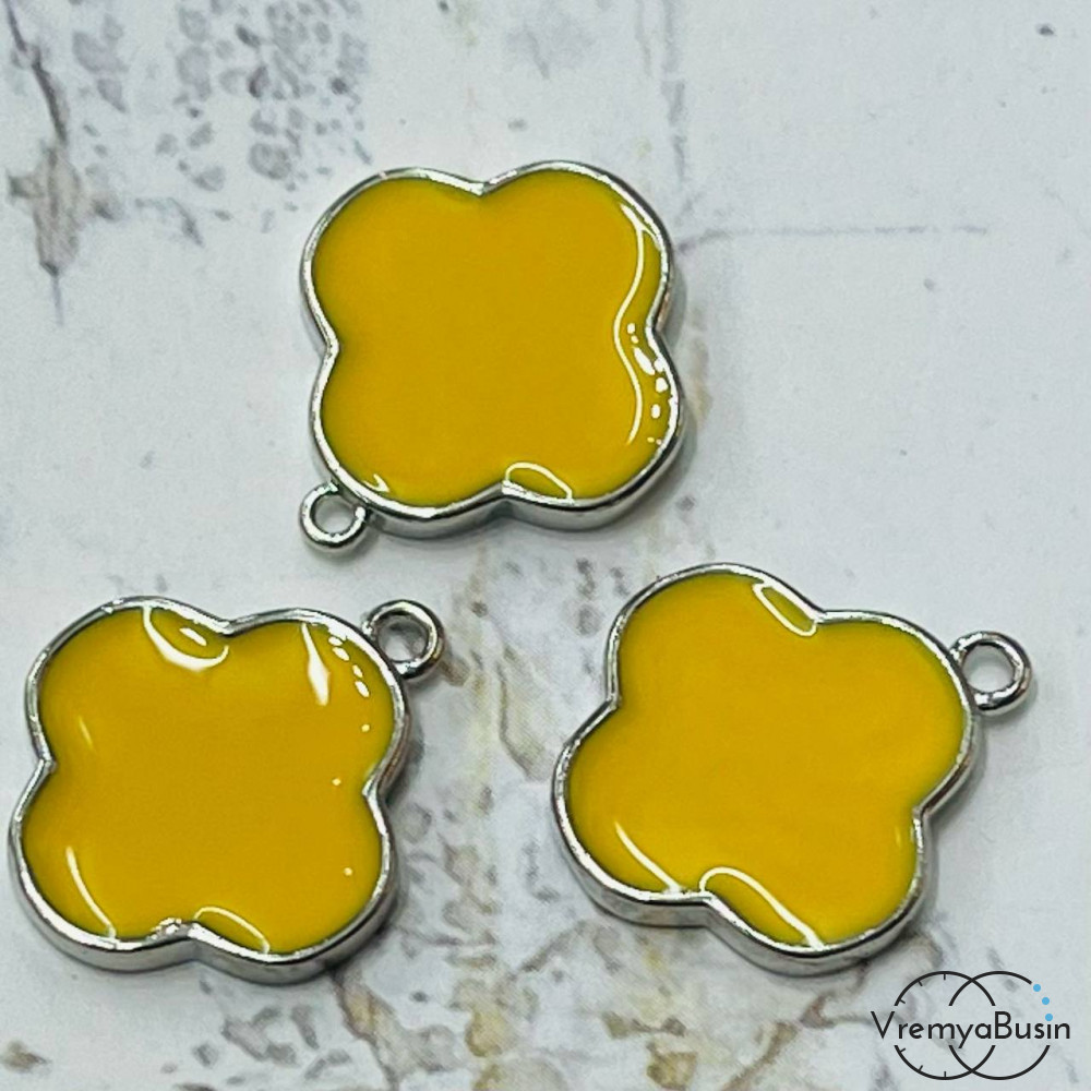 Подвеска с эмалью, клевер 16х18 мм, латунь с родиевым покрытием (1 шт.)
