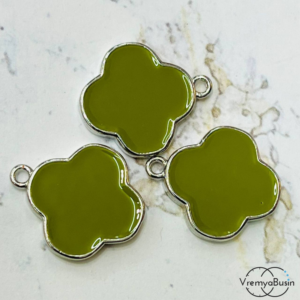 • Подвеска с эмалью, клевер 16х18 мм, латунь с родиевым покрытием (1 шт.)