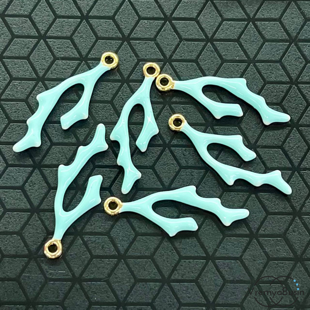 • Подвеска с эмалью "Коралл", 9х24 мм, бирюзовый, латунь с позолотой (1 шт.)