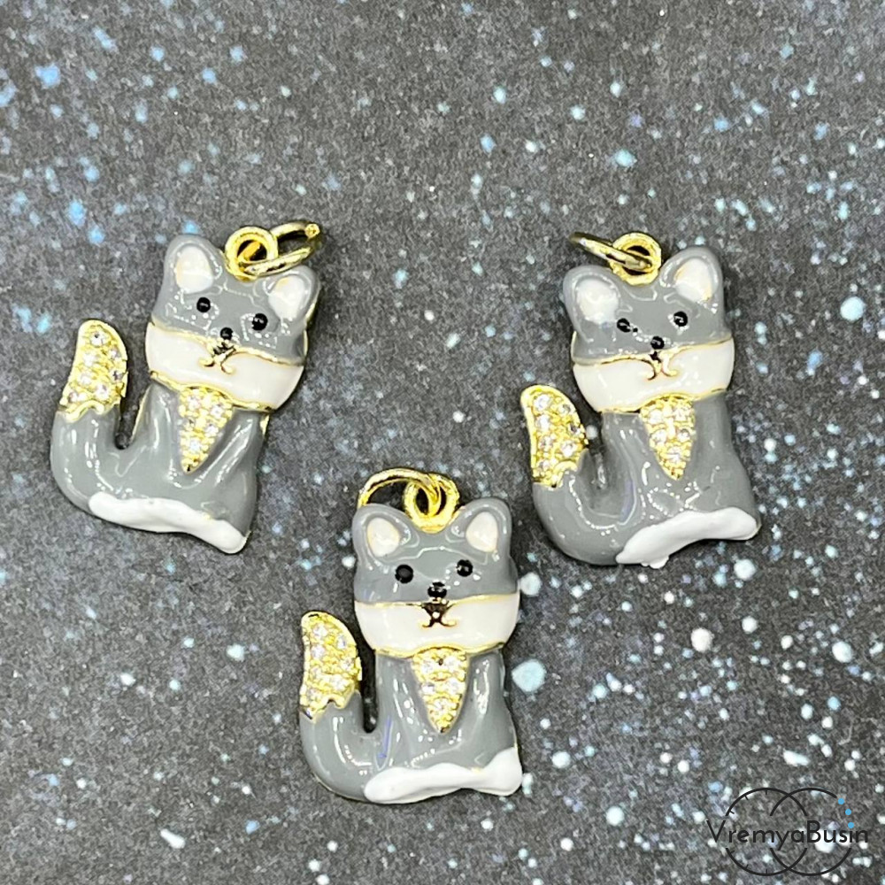 Подвеска с эмалью "Котик", 13х18 мм, латунь с позолотой (1 шт.)