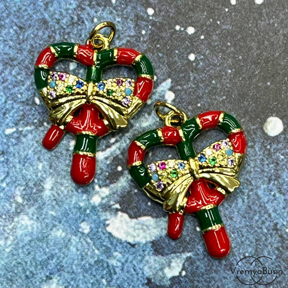 • Подвеска "Крендель", 19х15 мм, с эмалью и стразами, латунь с позолотой  (1 шт.)