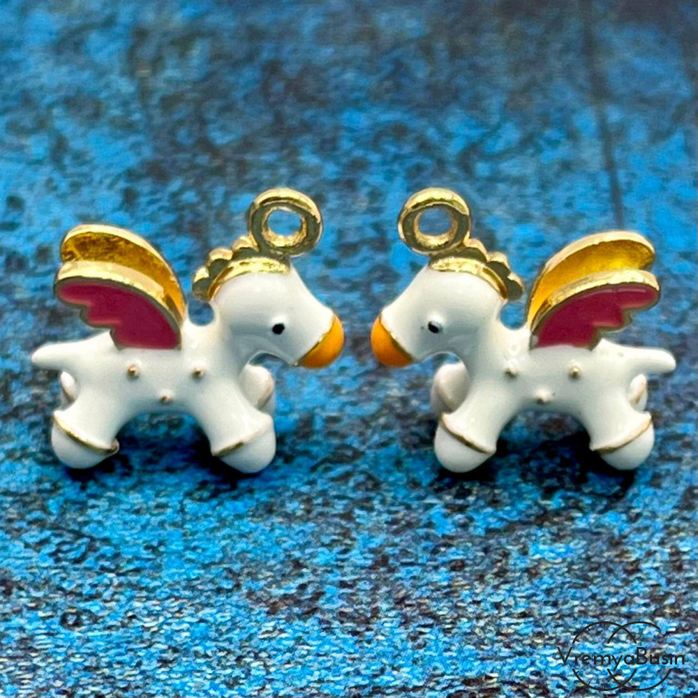 • Подвеска с эмалью "Лошадка", 17х18 мм, из латуни  с позолотой (1 шт.)