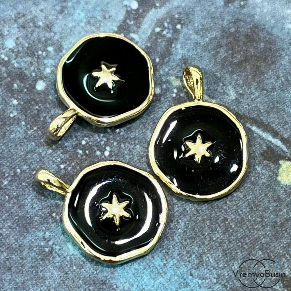 Подвеска с эмалью, медальон 12х17 мм, латунь с позолотой (1 шт.)