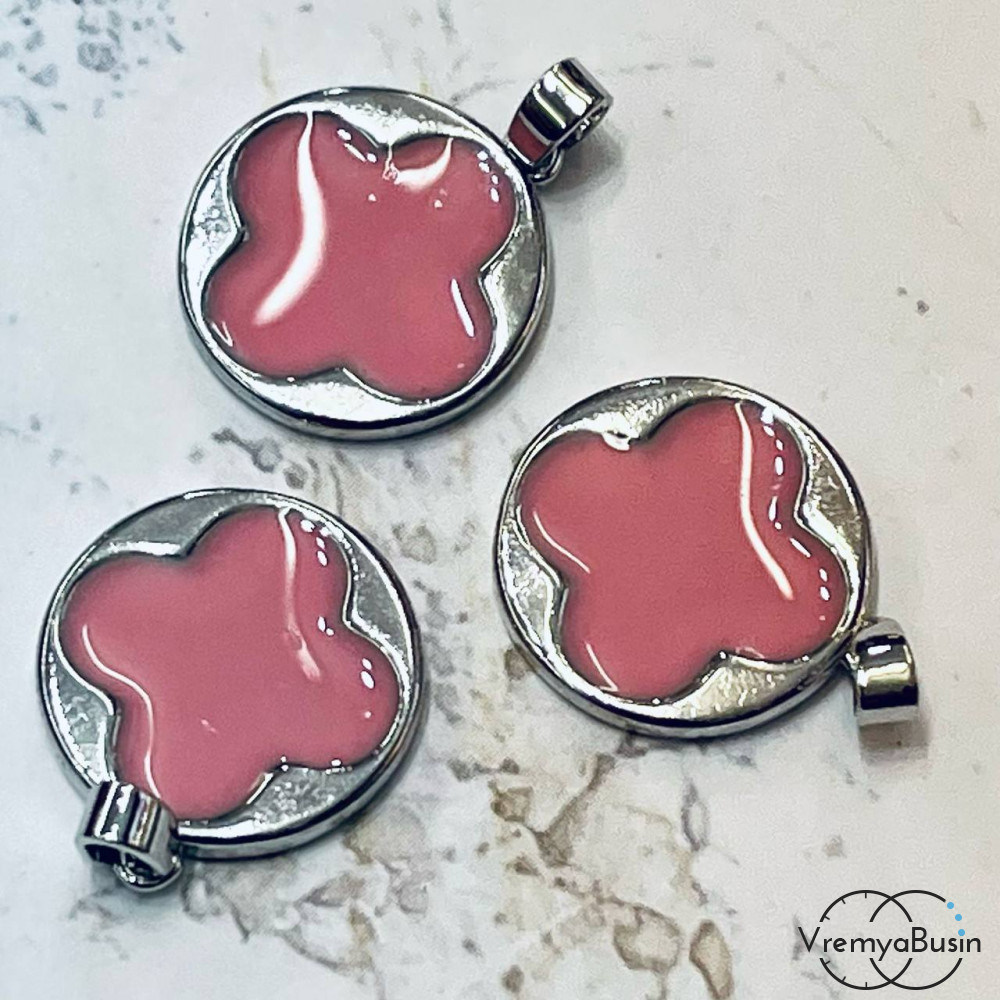 Подвеска с эмалью, медальон клевер 16 мм, латунь с родиевым покрытием (1 шт.)