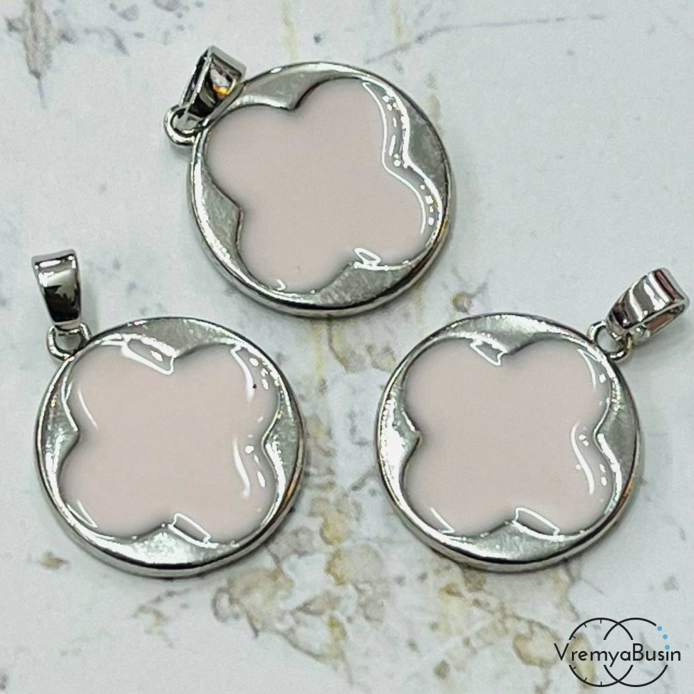 • Подвеска с эмалью, медальон клевер 16 мм, латунь с родиевым покрытием (1 шт.)