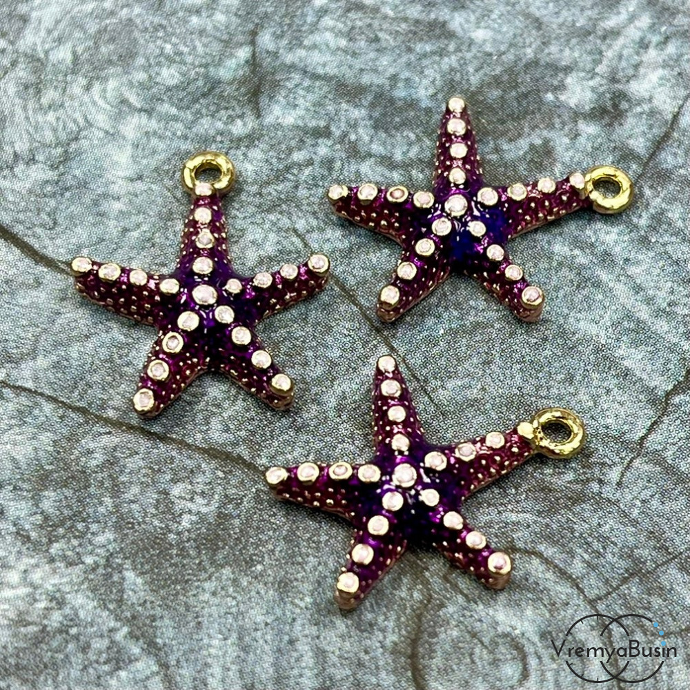 Подвеска с эмалью "Морская звезда", 16х20 мм, цв. фиолетовый (1 шт.)