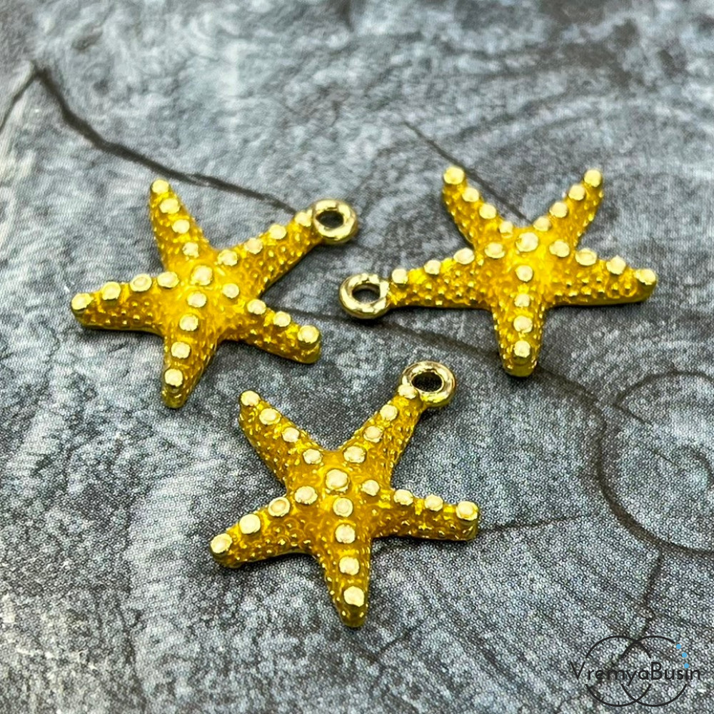 Подвеска с эмалью "Морская звезда", 16х20 мм, цв. желтый (1 шт.)