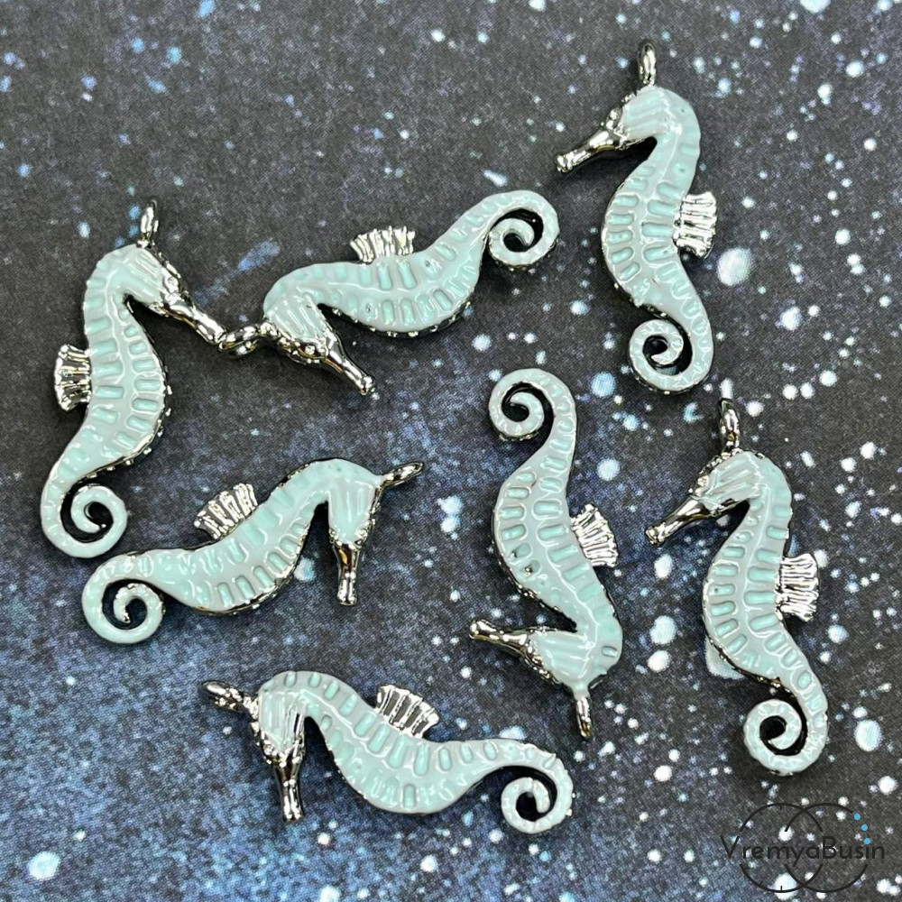 • Подвеска с эмалью "Морской конек", 8х20 мм, латунь с родиевым покрытием  (1 шт.)