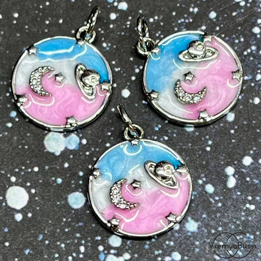 Подвеска с эмалью "Планеты", 14 мм, латунь с родиевым покрытием (1 шт.)