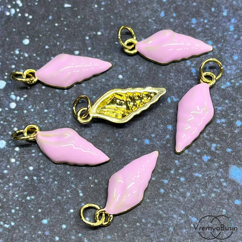 Подвеска с эмалью "Ракушка", 8х18 мм, латунь с позолотой (1 шт.)