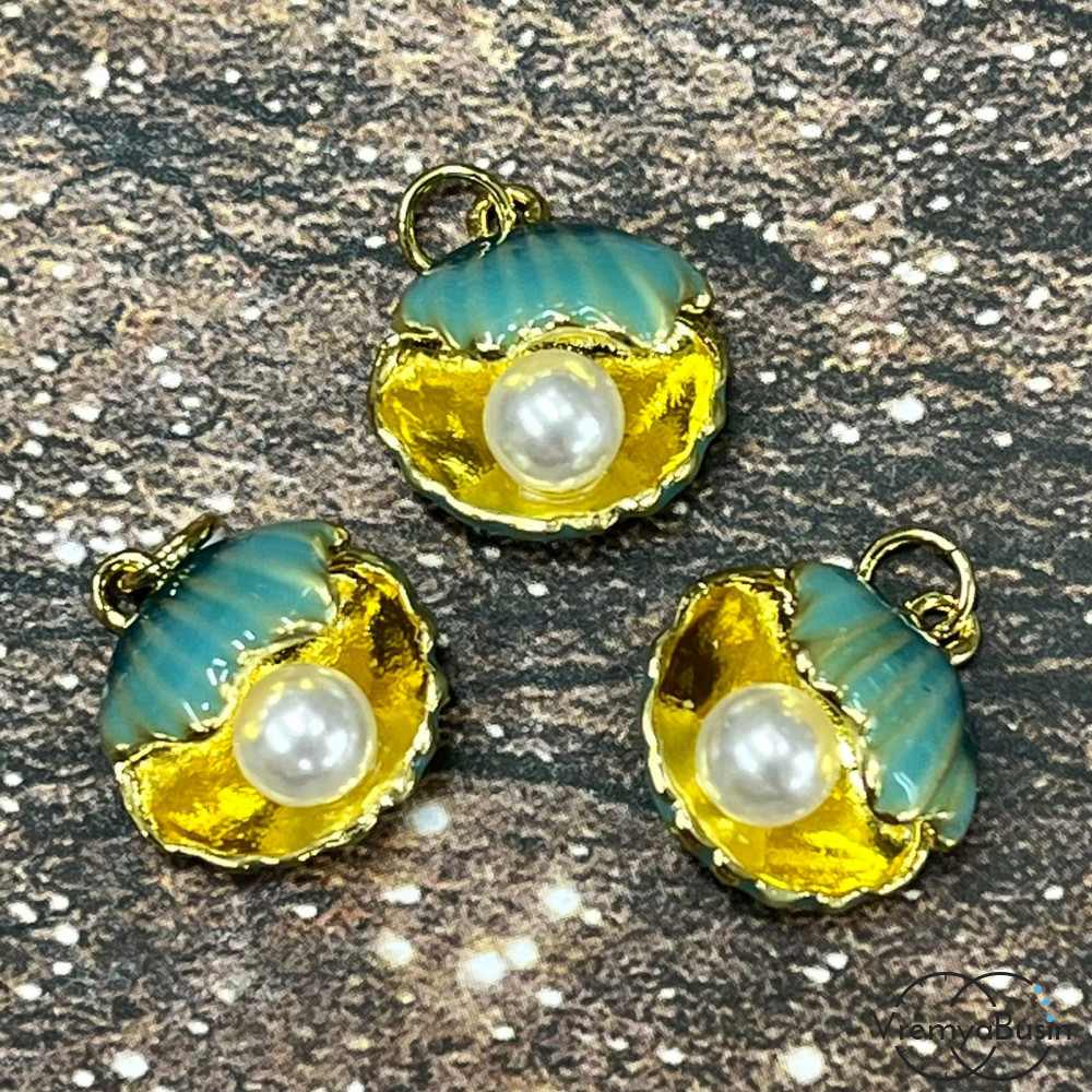 • Подвеска с эмалью "Ракушка с жемчужиной", 14х16 мм, латунь с позолотой (1 шт.)