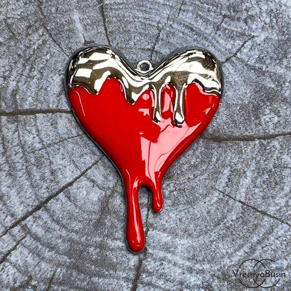 Подвеска с эмалью "Тающее сердце", 40х30 мм, латунь с родиевым покрытием (1 шт.)
