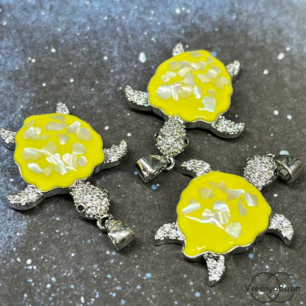 • Подвеска с эмалью и перламутром «Черепаха», 21х25 мм, латунь с родиевым покрытием (1 шт.)