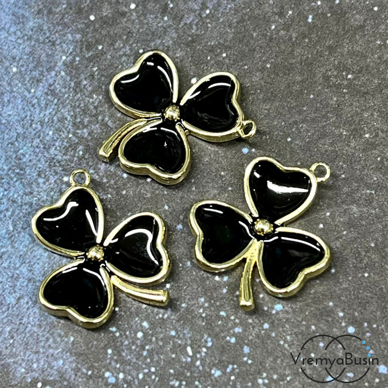 Подвеска с эмалью «Клевер», 15х17 мм, латунь с позолотой (1 шт.)