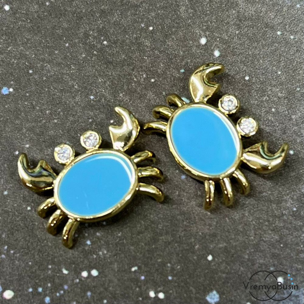 Подвеска с эмалью «Краб», 13х16 мм, латунь с позолотой (1 шт.)