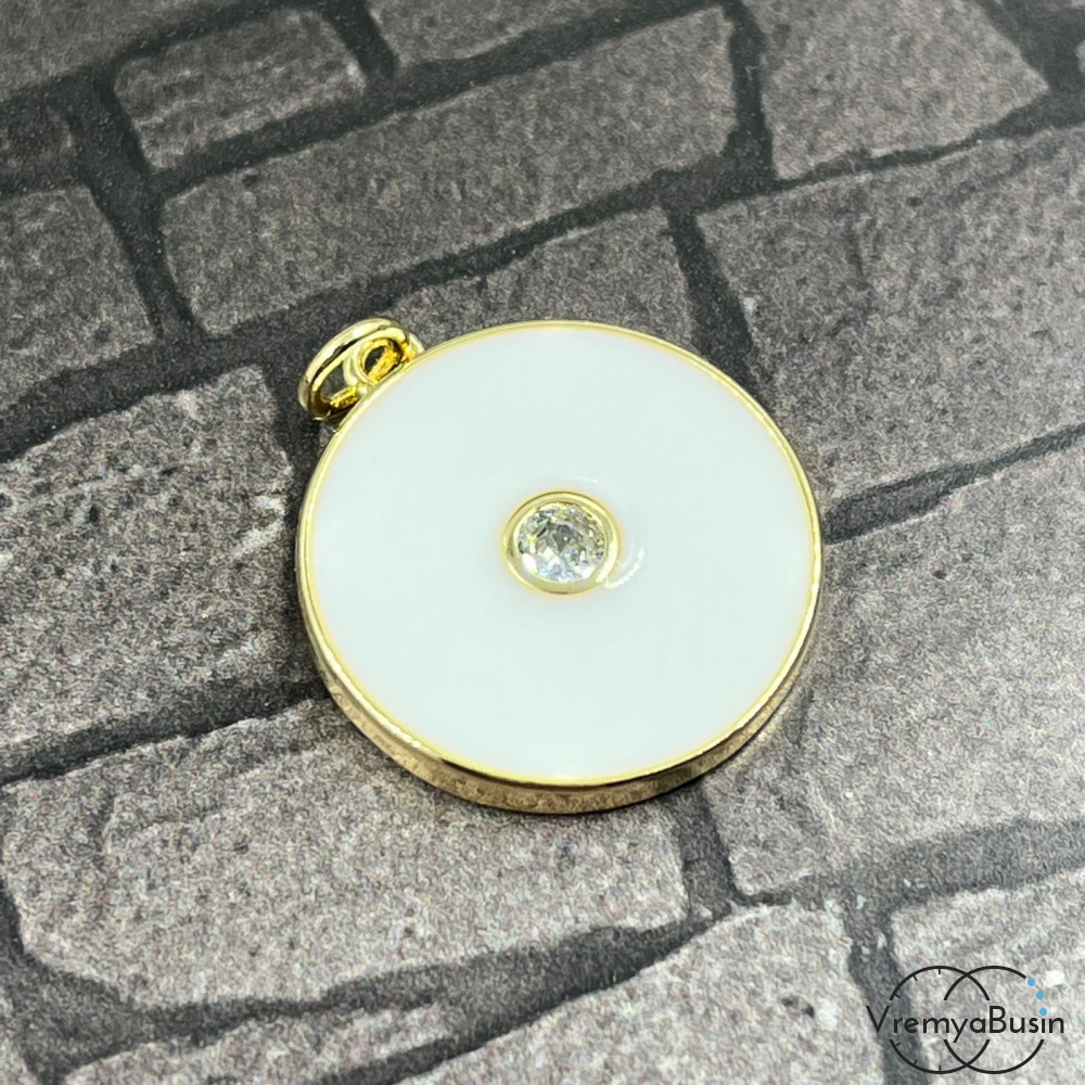 Подвеска с эмалью, диам. 20 мм, латунь с позолотой (1 шт.)