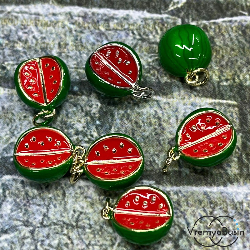 Подвеска с эмалью "Арбуз", 12х15 мм, латунь с позолотой (1 шт.)
