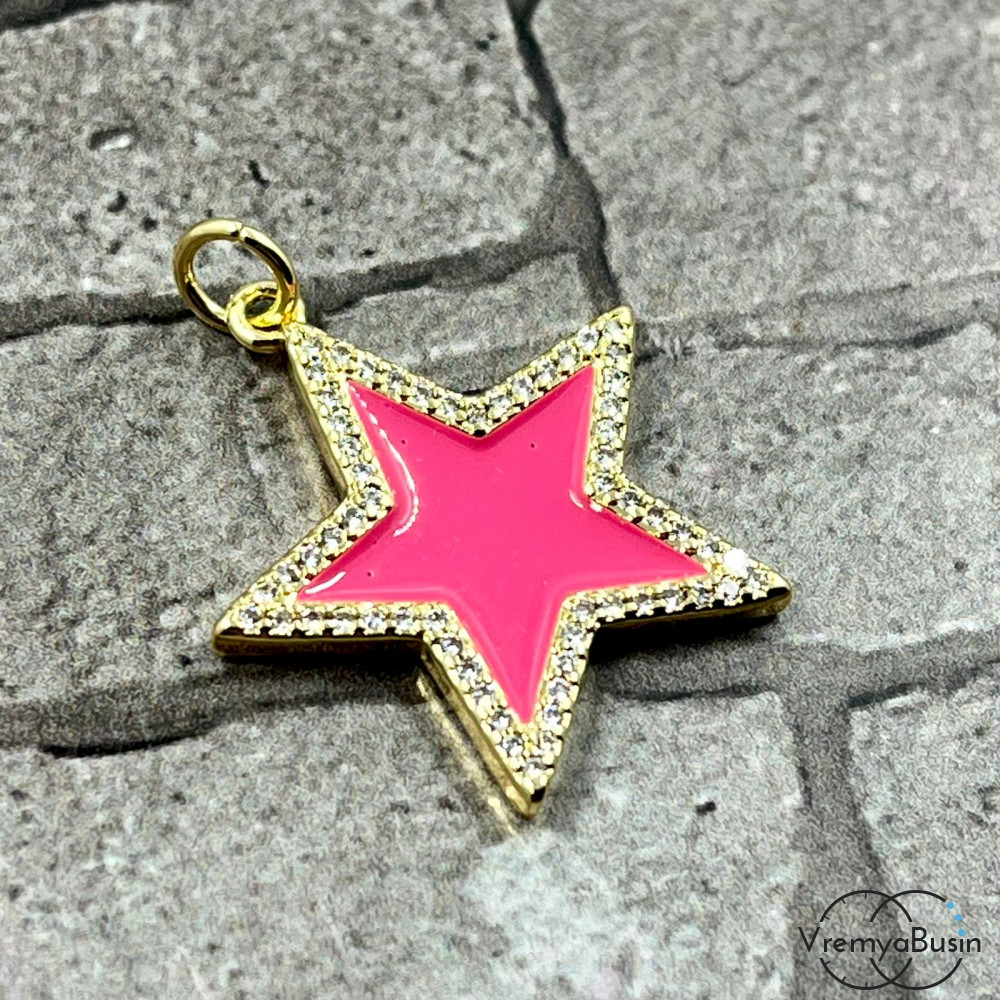 Подвеска с эмалью "Звезда", 18х22 мм, латунь с позолотой (1 шт.)