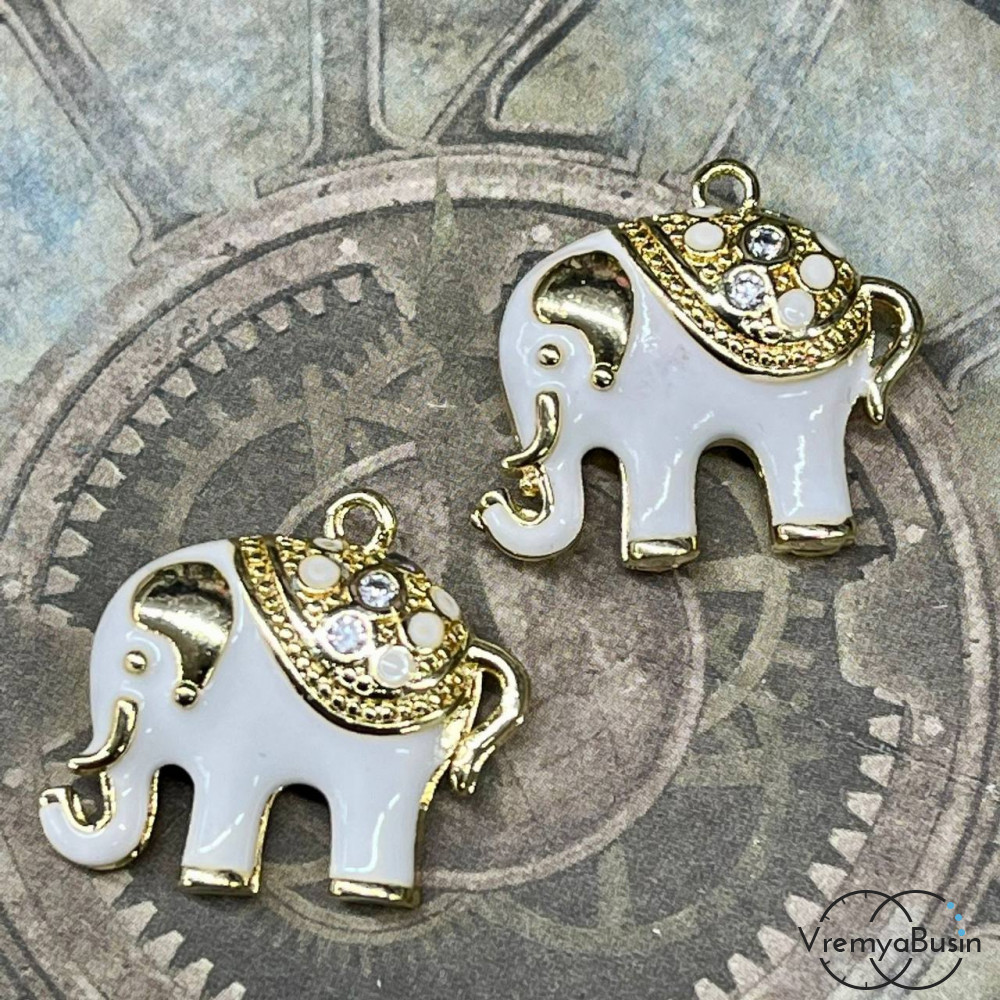 Подвеска с эмалью "Слон", 20х28х6 мм, латунь с позолотой (1 шт.)