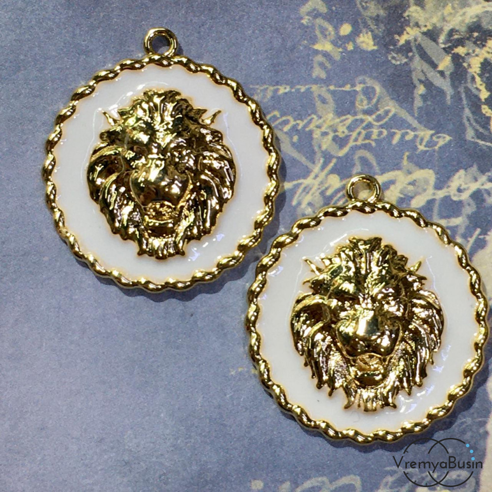 Подвеска-медальон "Лев" с эмалью, латунь с позолотой 25х27 мм(1 шт.)