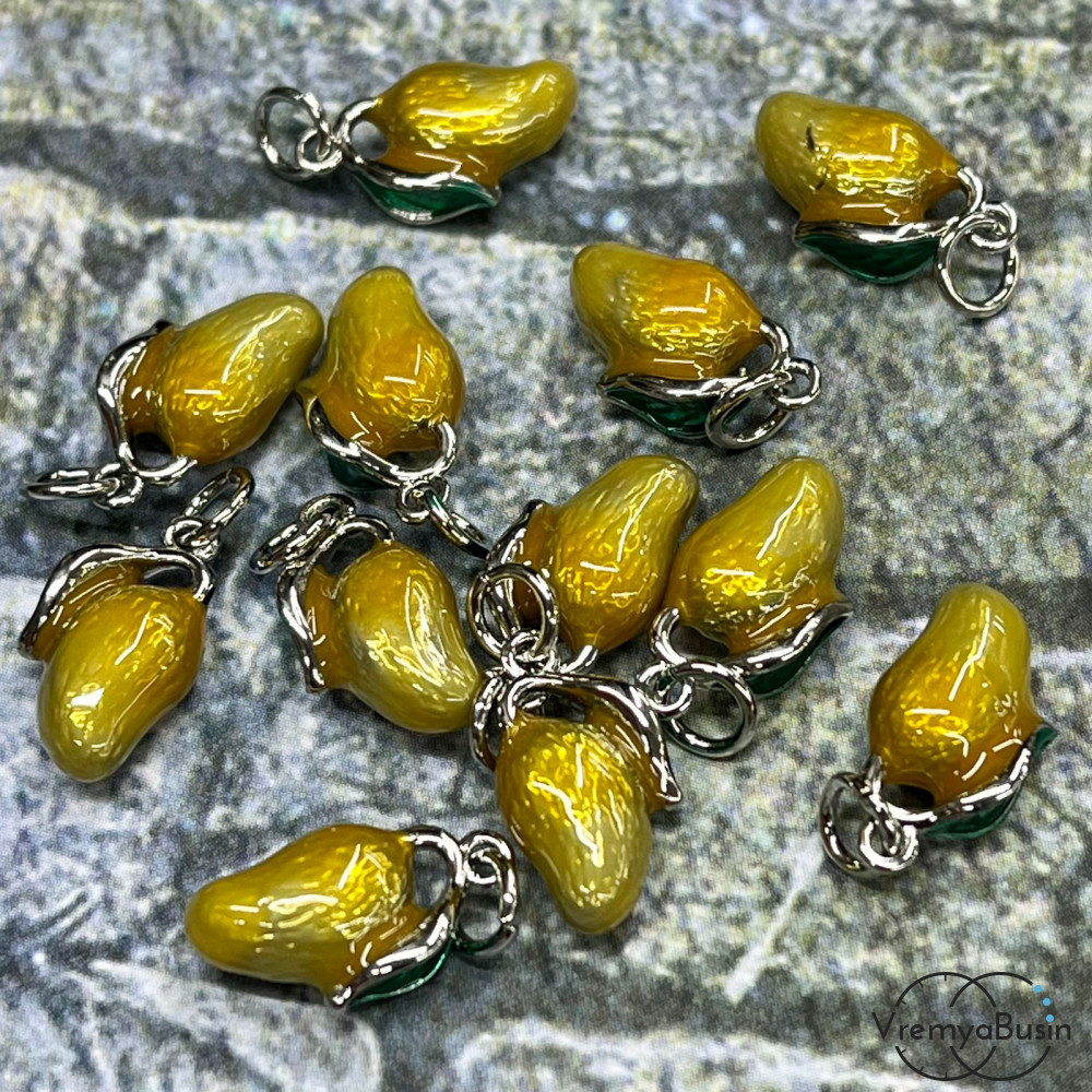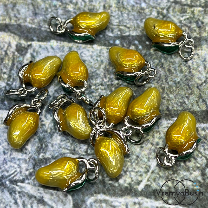 • Подвеска с эмалью "Манго", 14х8 мм, латунь с родиевым покрытием (1 шт.)