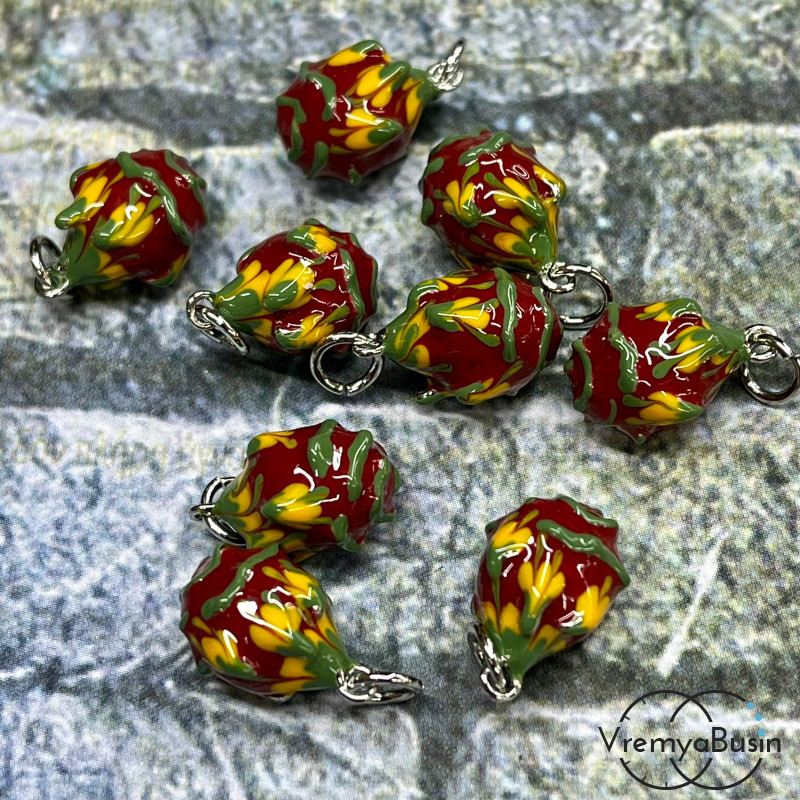 • Подвеска с эмалью "Дракон фрукт", 9х13 мм, латунь с родиевым покрытием (1 шт.)