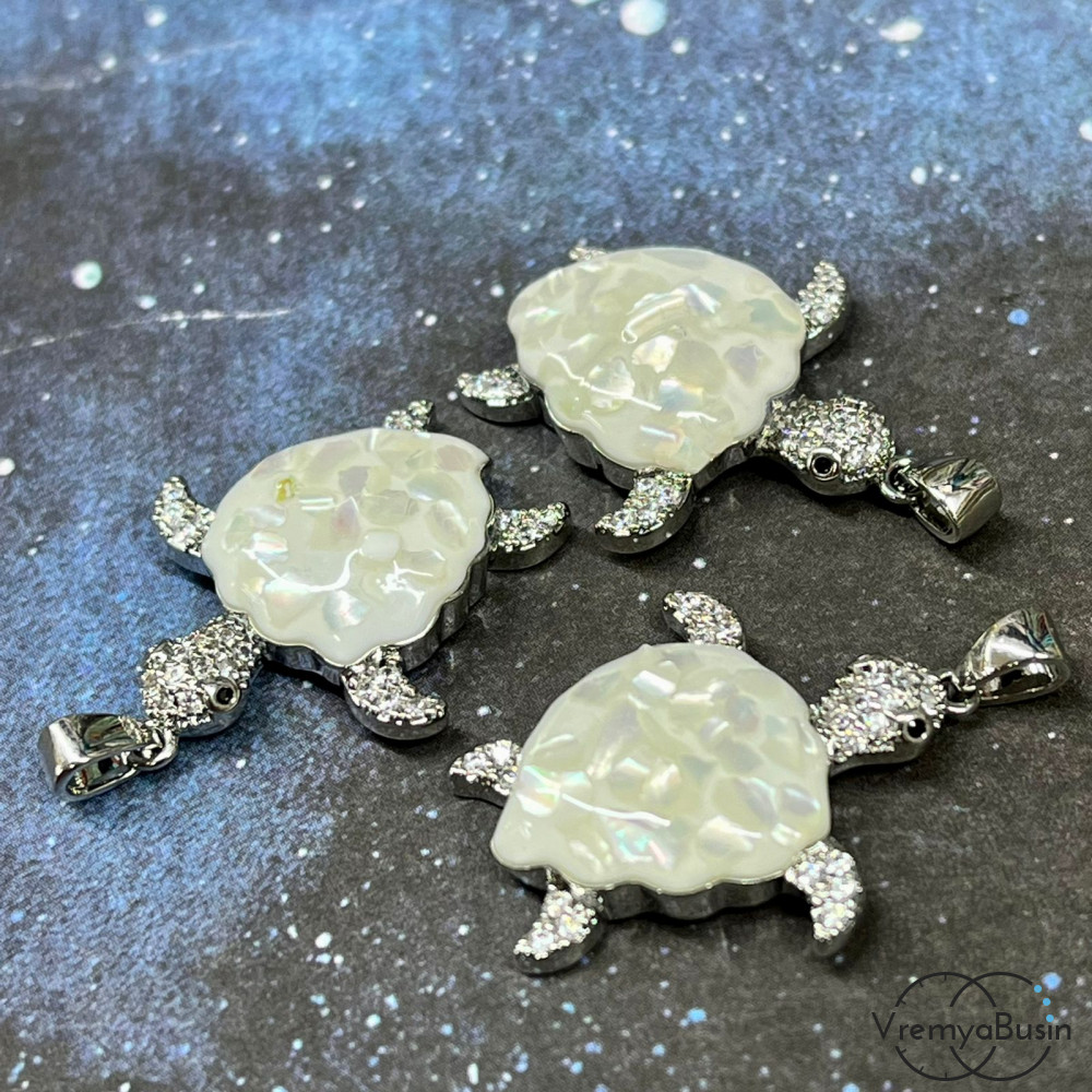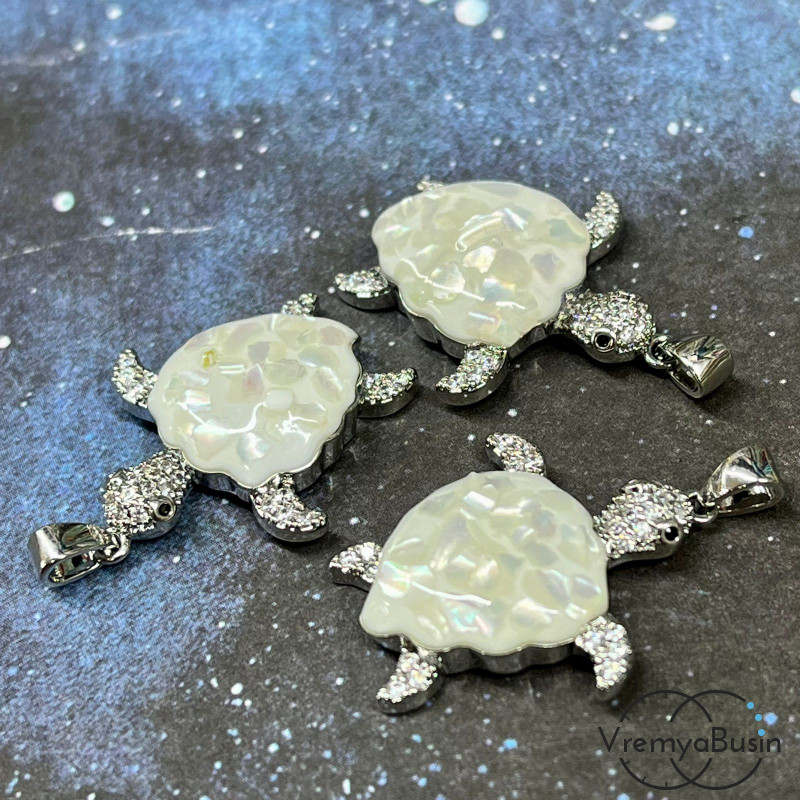 • Подвеска с эмалью и перламутром «Черепаха», 21х25 мм, латунь с родиевым покрытием (1 шт.)