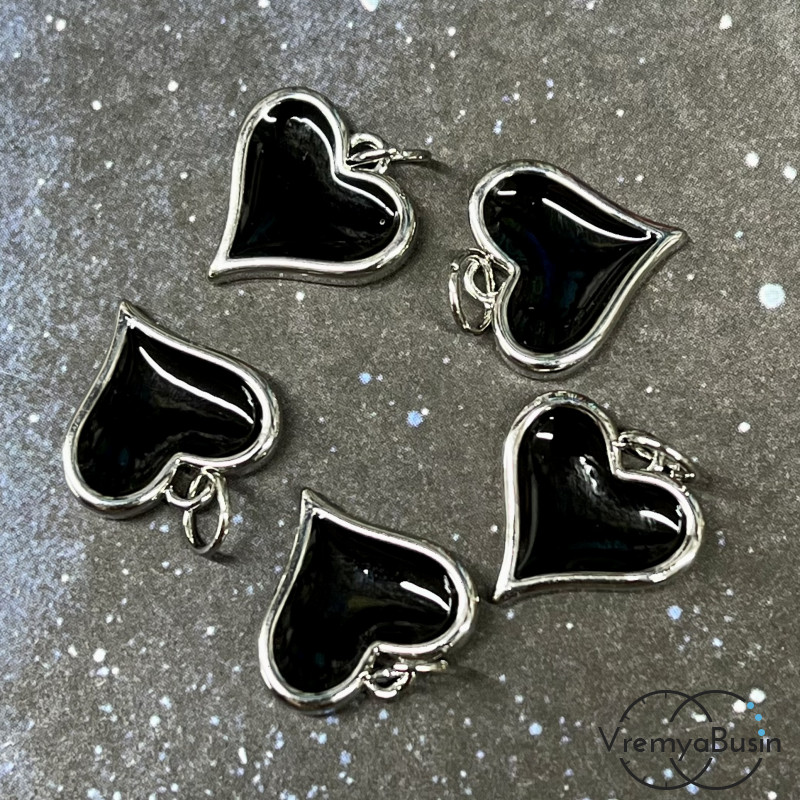 Подвеска с эмалью «Сердце», 12х14 мм, латунь с родиевым покрытием (1 шт.)