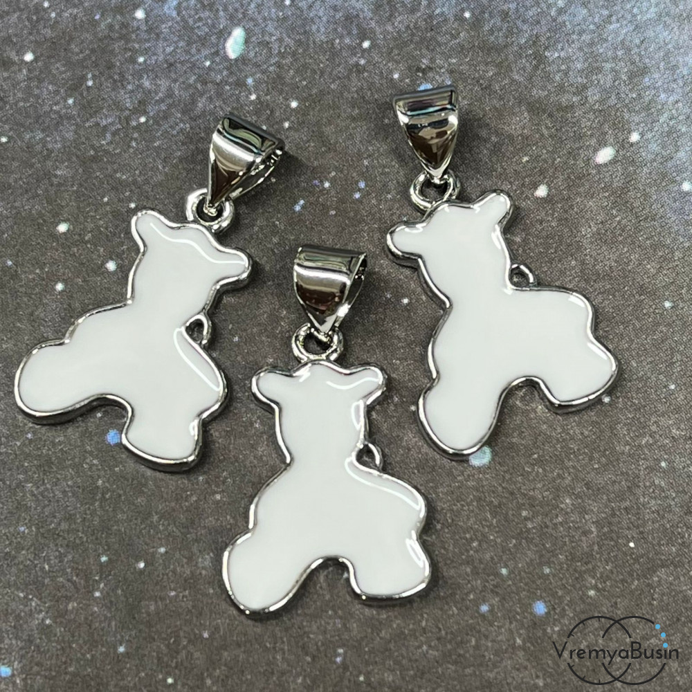 • Подвеска с эмалью «Мишка», 13х18 мм, латунь  с родиевым покрытием (1 шт.)