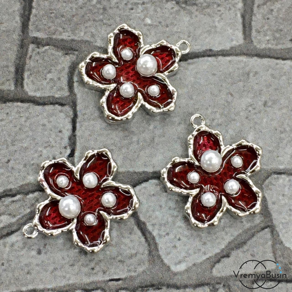 Подвеска с эмалью "Цветочек", цв. красный в серебре (1 шт.)