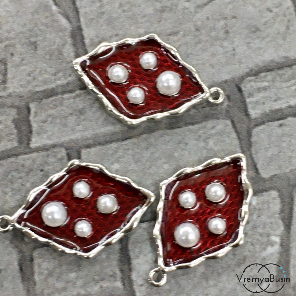Подвеска с эмалью "Листик", цв. красный в серебре (1 шт.)
