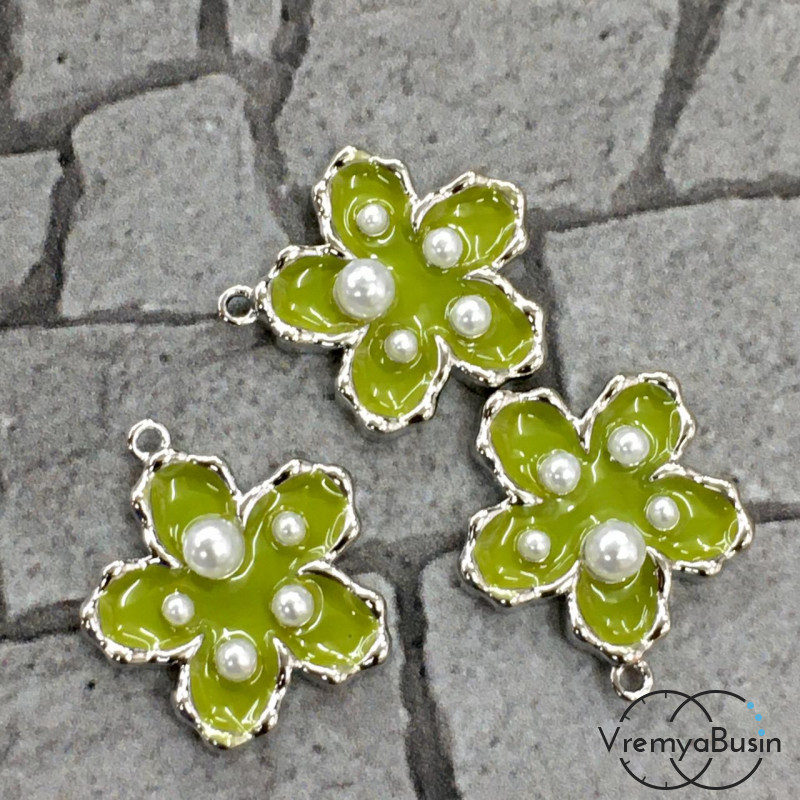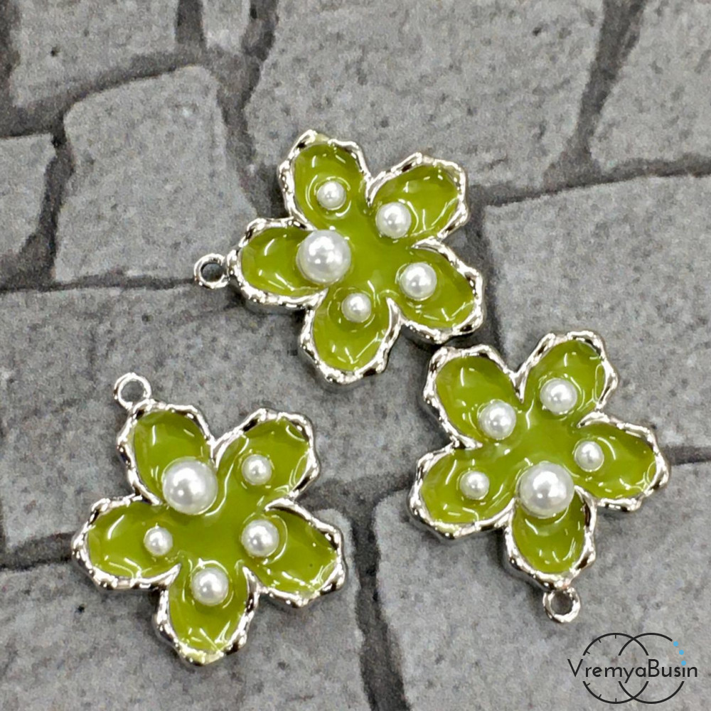 Подвеска с эмалью "Цветочек", цв. салатовый в серебре (1 шт.)